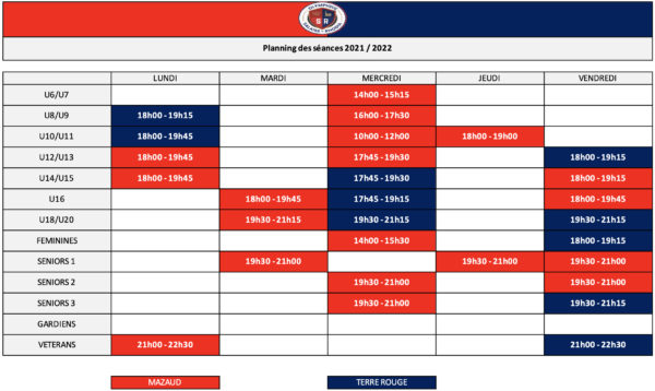 Planning des séances 21 22