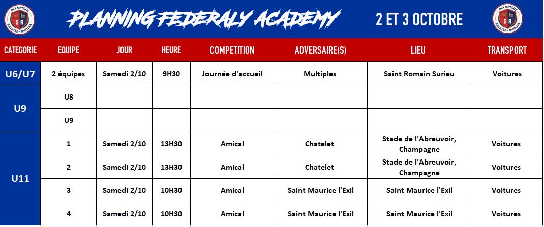 Planning federaly academy 2-3 octobre